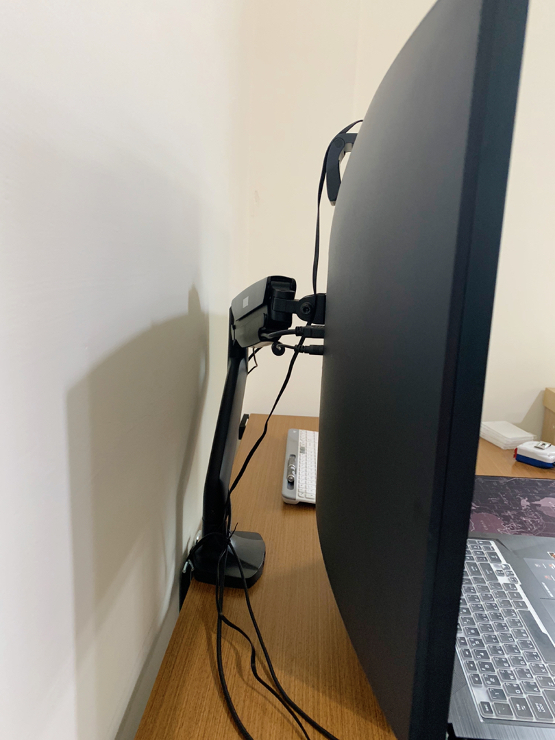 8. 安裝過程簡單容易,支架雙節臂帶有線材收納設計,維持桌面簡潔美觀,時尚的設計為任何辦公桌增添了一抹時尚氣息