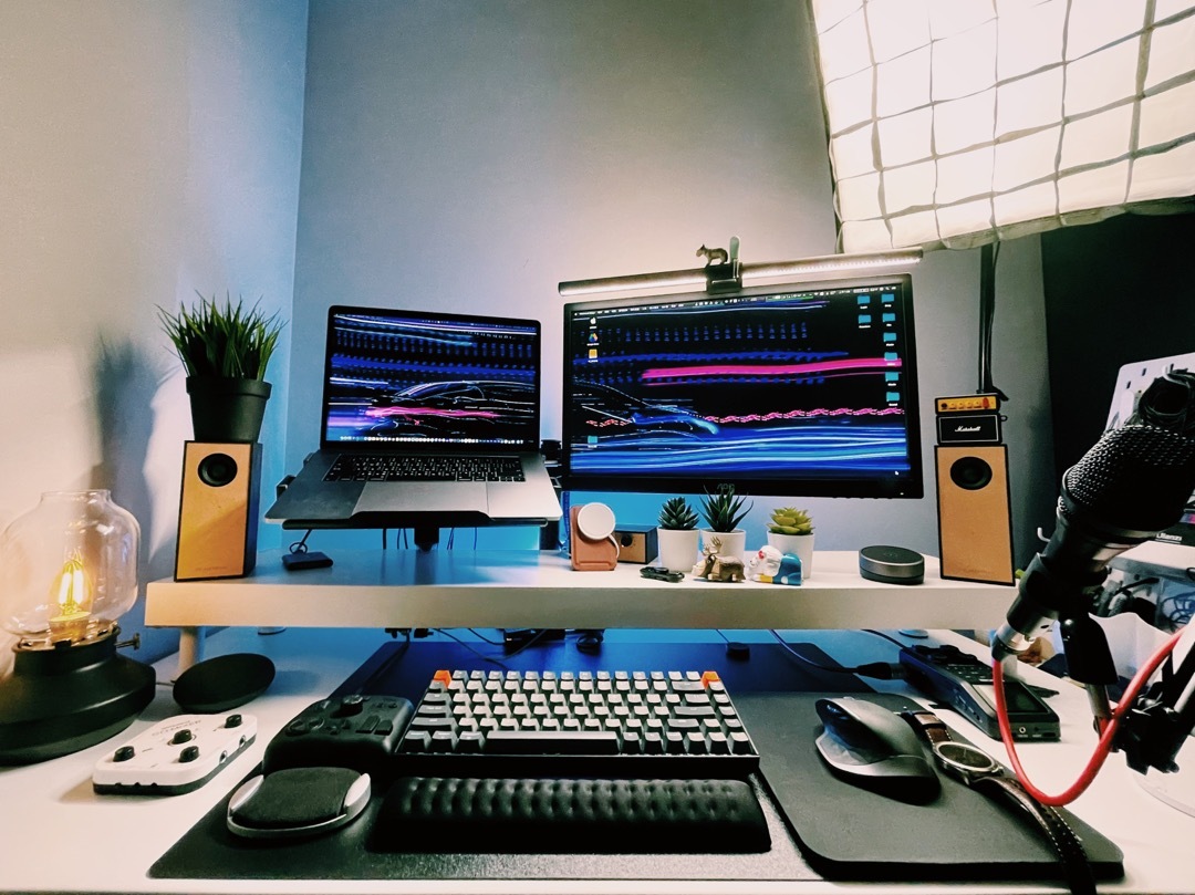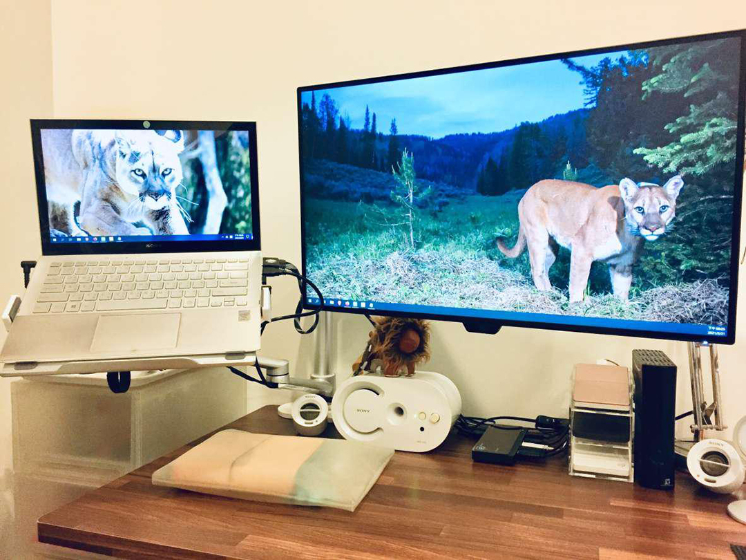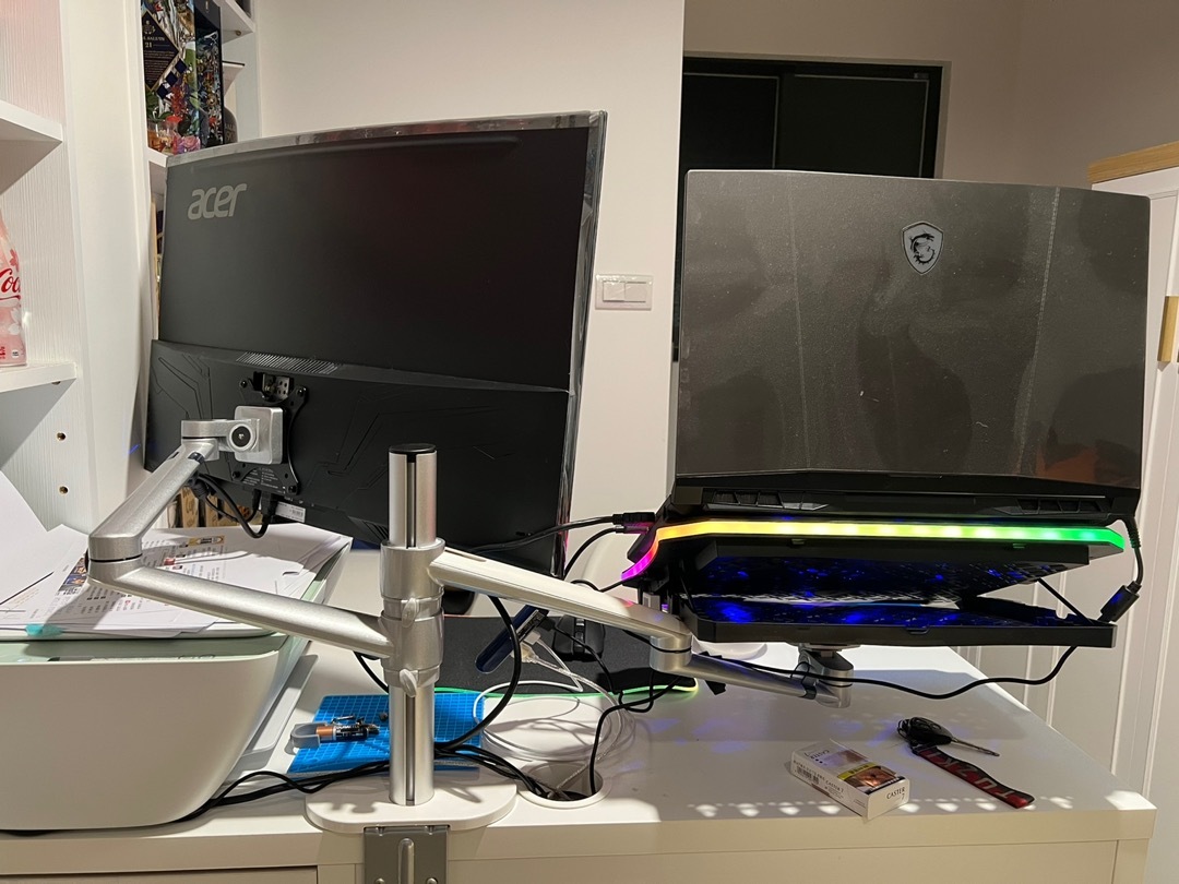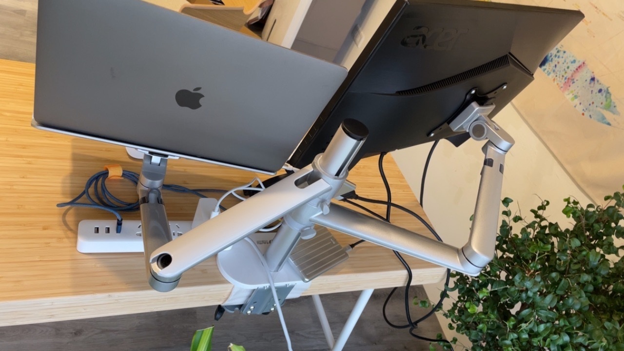 3. 雙螢幕效率加倍:雙臂設計,帶有筆電托盤,同時擁有螢幕支架與筆電支架