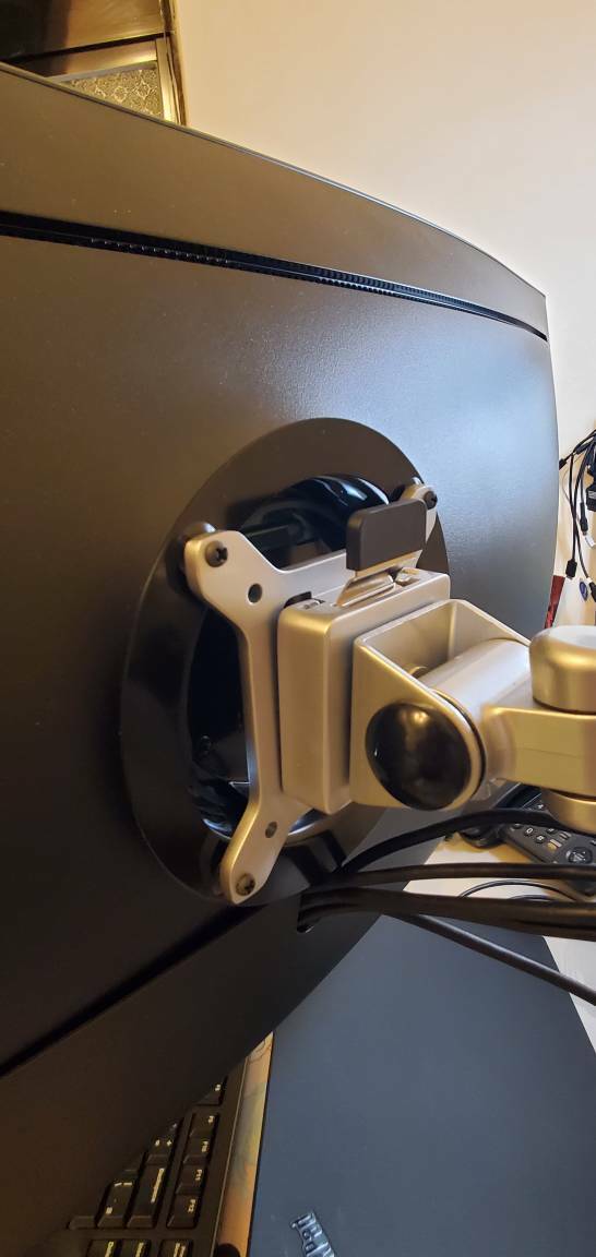 5. 針對大重量曲面螢幕重新設計的超強化轉接頭,在轉接頭內加入了彈簧結構鞏固張力,關節支撐力強,懸掛大曲面螢幕不下垂