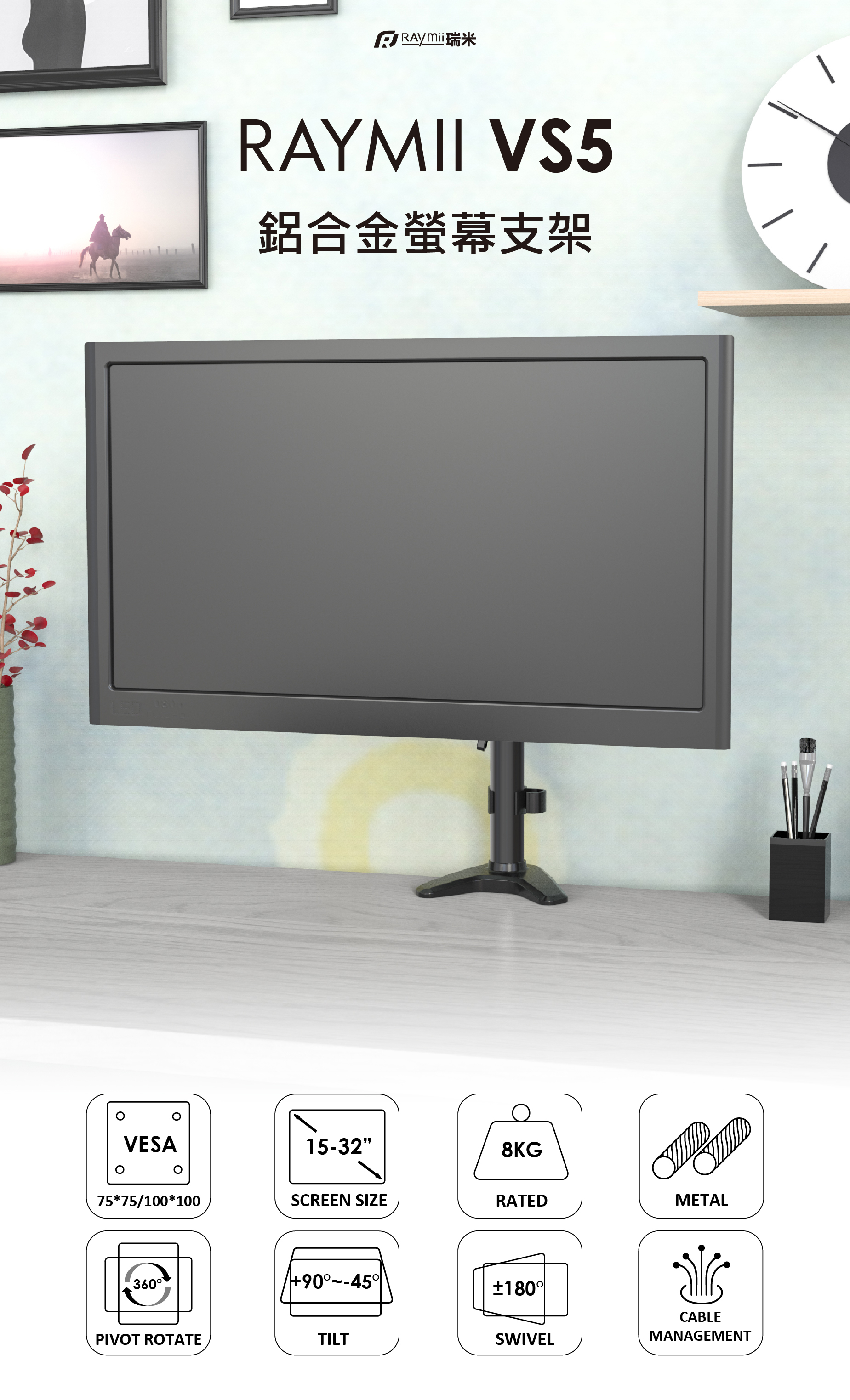【Raymii VS5 鋁合金機械式螢幕支架 螢幕架 螢幕增高支架】
