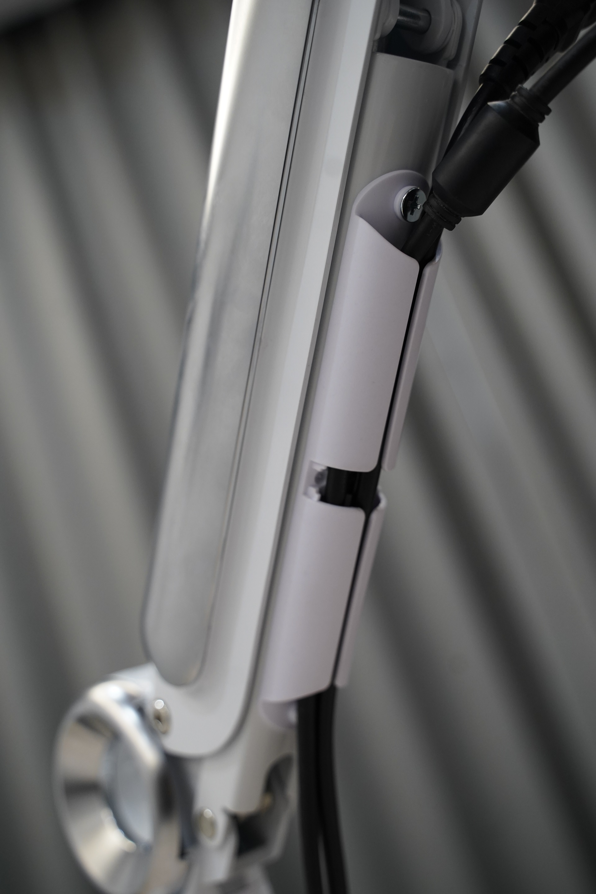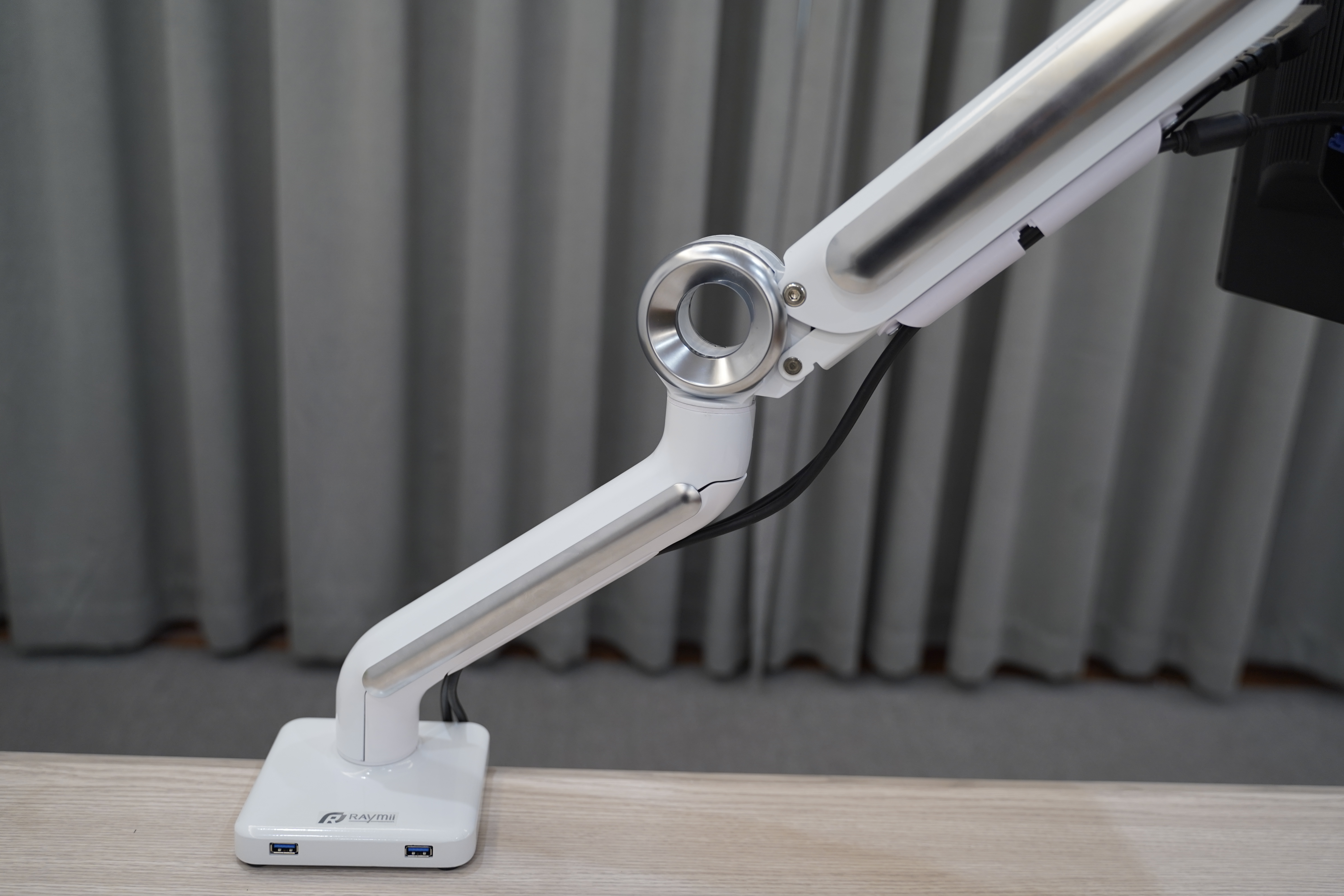 9. 安裝過程簡單容易,支架臂與中柱帶有線材收納設計,維持桌面簡潔美觀