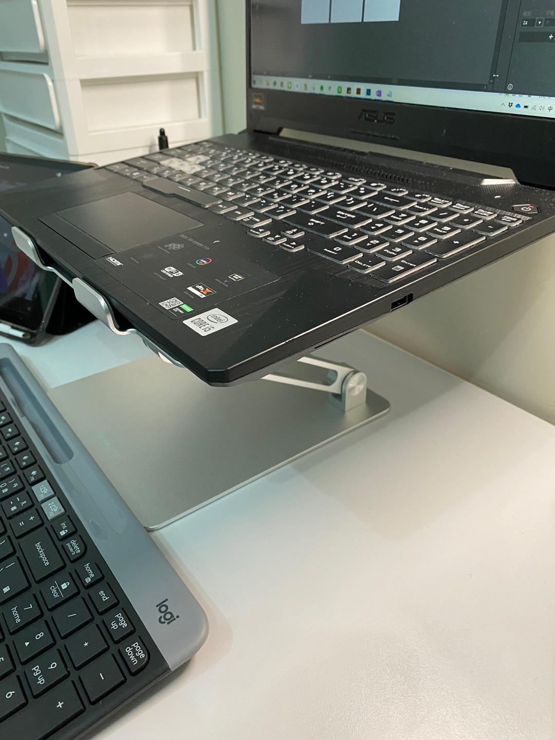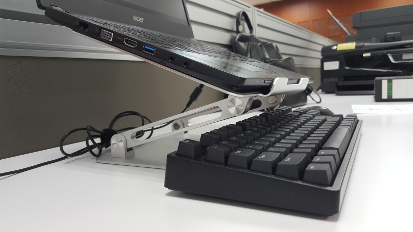 平台寬度28CM,可支援大尺寸筆電。全鋁合金,雙支撐臂,高強度轉軸,緊實耐重力強