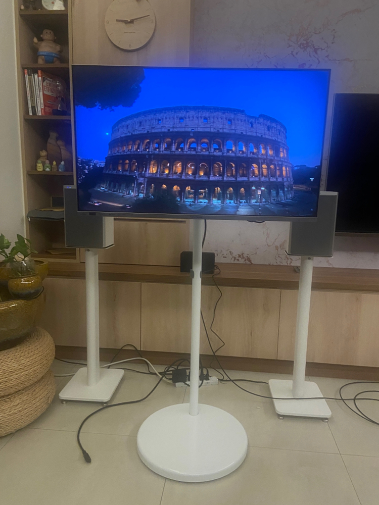 3. 落地支架的主體使用鋼材打造,材質堅固耐用。獨特的環狀懸浮設計,造型搶眼且乾淨清爽,與各種環境百搭,並提升室內環境格調與氛圍