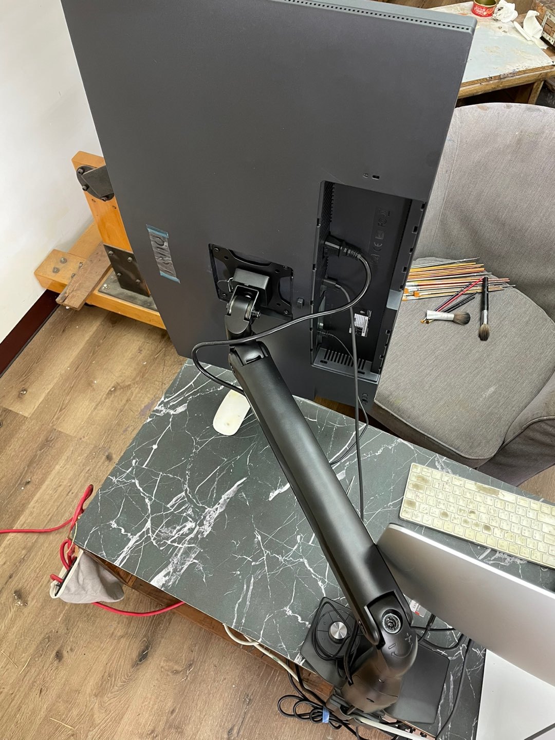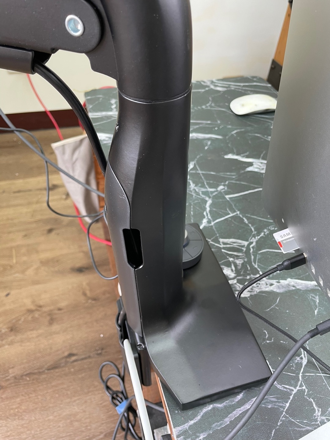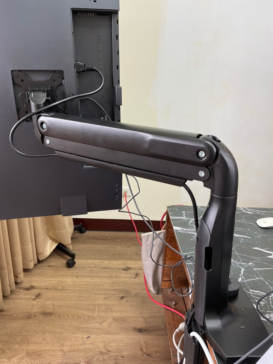 9. 安裝過程簡單容易,支架臂與中柱以及底座均帶有線材收納設計,維持桌面簡潔美觀