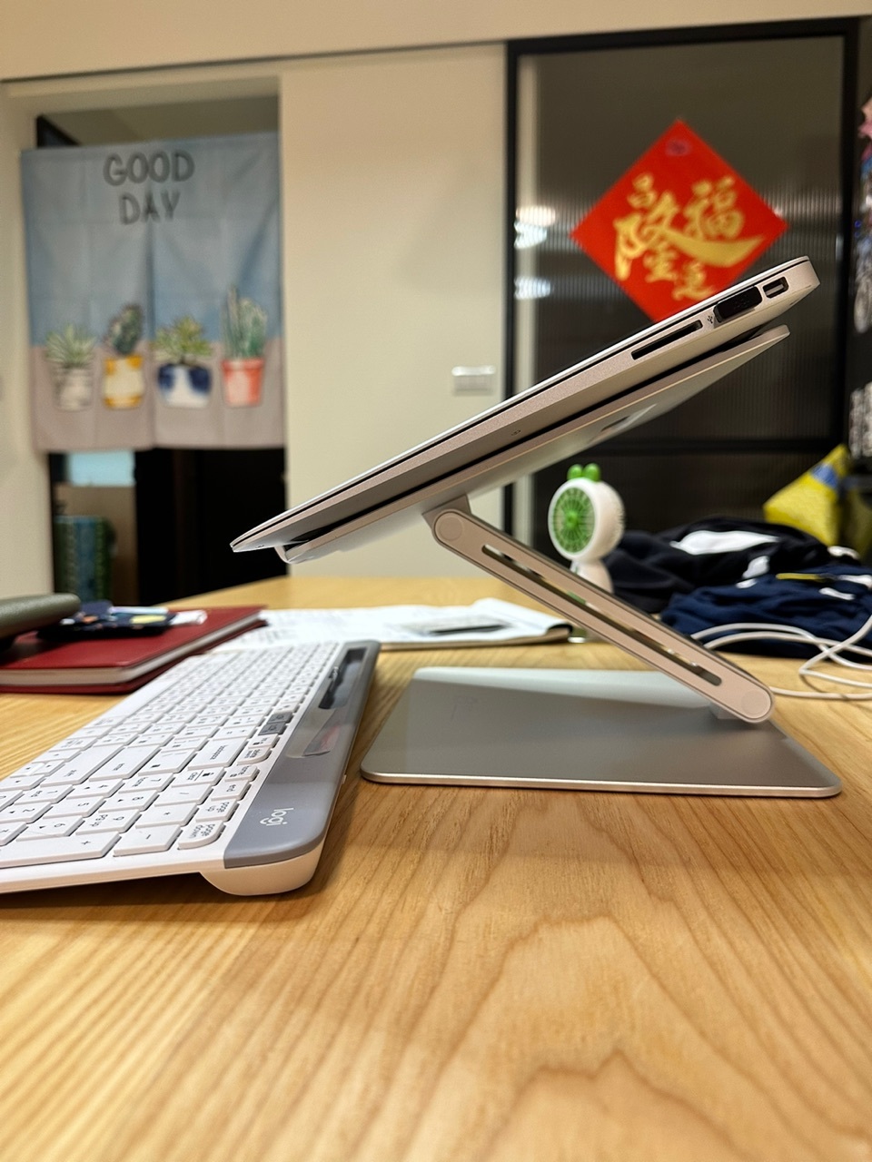 2. 有效托高筆電,提高視角設計,符合人體工學,適合電腦長時間使用者,舒緩肩頸及腰部酸痛