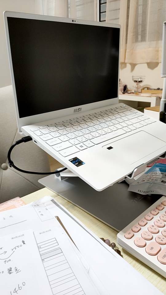 9. 最佳使用筆電支架方式,建議搭配外接鍵盤與滑鼠,更能達到人體工學之效果