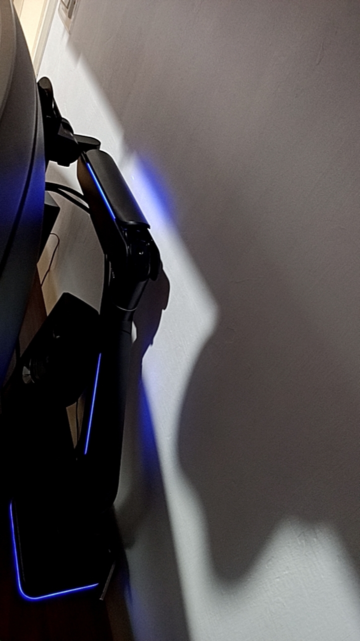 7. 啟發於專業RGB電競光效的設計理念,於支臂與底座內嵌RGB LED發光元件,打造與環境一體的沉浸式遊戲氛圍效果