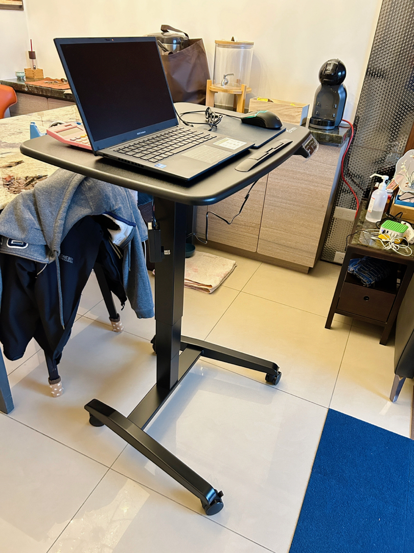 帶輪子方便移動,並且桌面可以翻轉的小型的電動升降桌