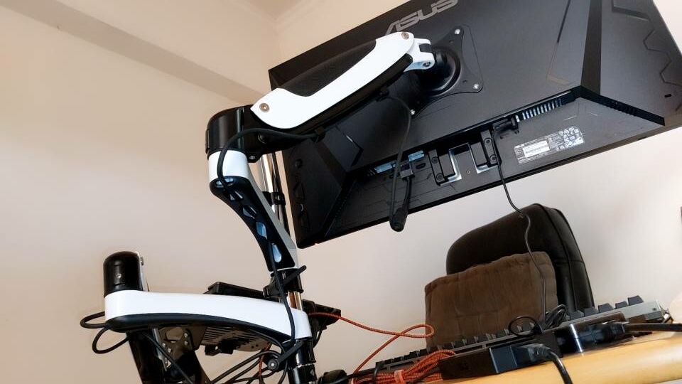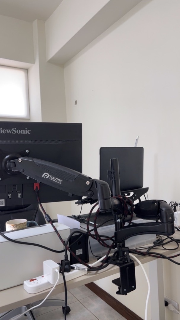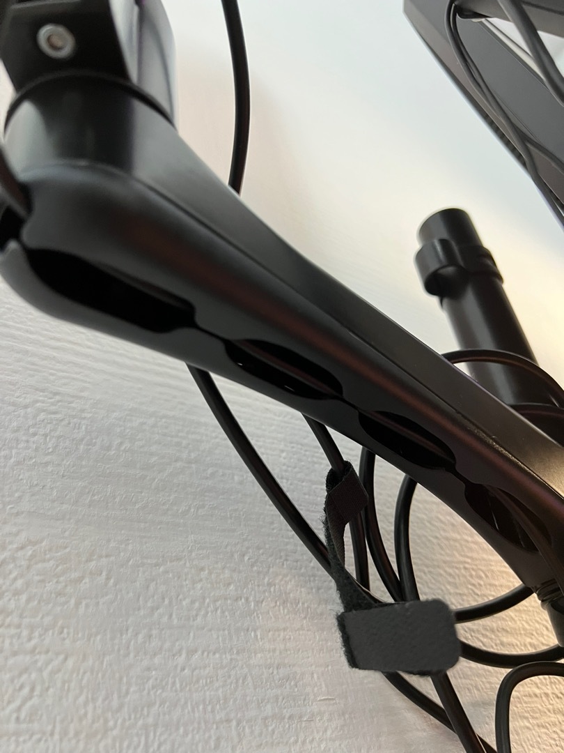 11. 安裝過程簡單容易,支架臂與中柱帶有線材收納設計,維持桌面簡潔美觀