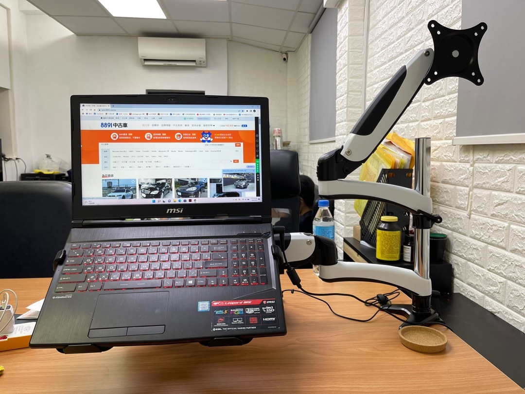 7. 托盤使用鋼材全金屬打造,支撐力強,堅固耐用,夾具能伸縮與垂直調整,能支持至19吋筆電