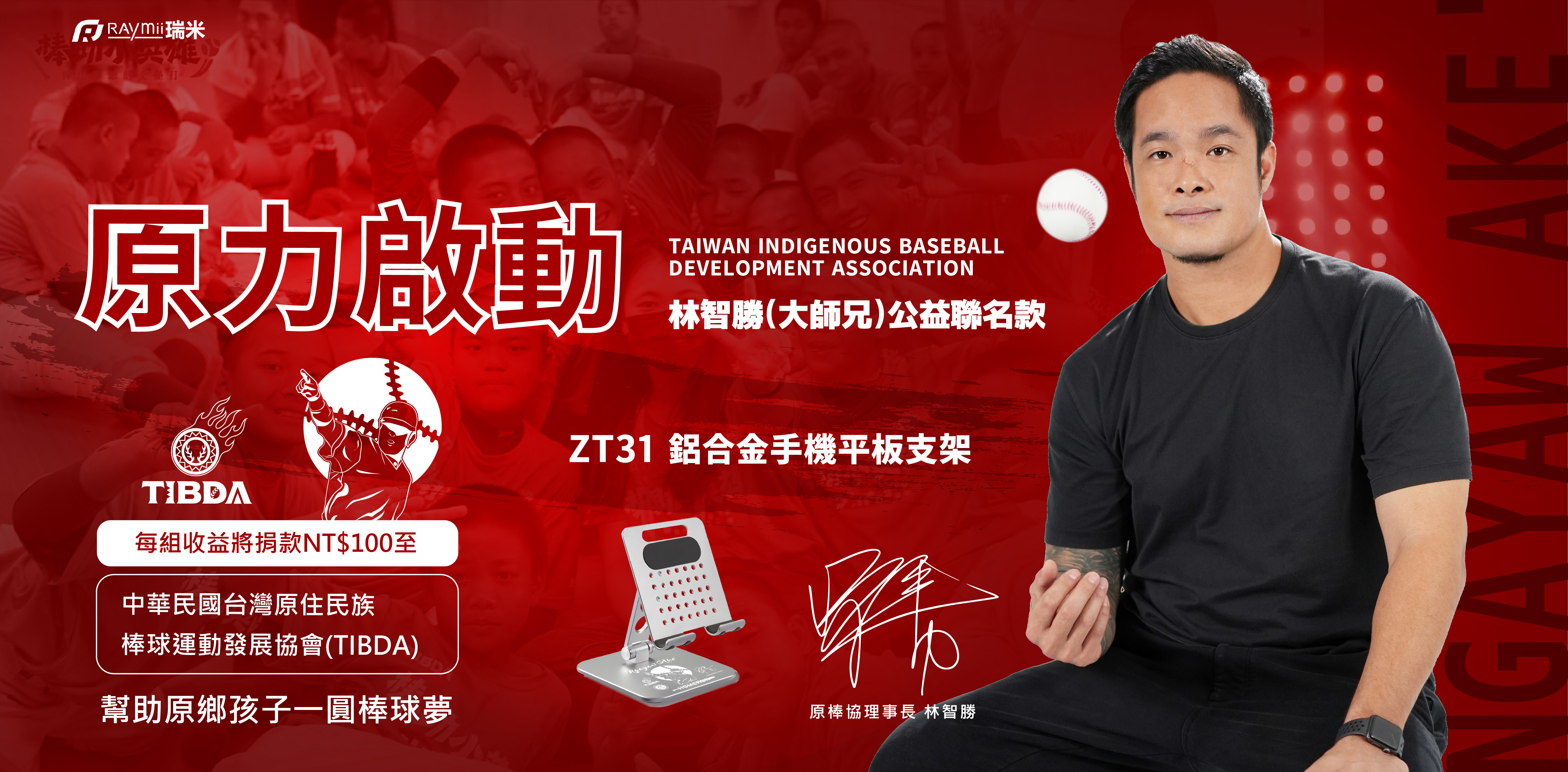 瑞米積極參與公益活動,為了給原鄉孩童們更多幫助與資源,與原棒協攜手合作,並邀請現任原棒協理事長[大師兄]林智勝親自參與設計,聯名推出「公益紀念款ZT31鋁合金手機平板支架」。