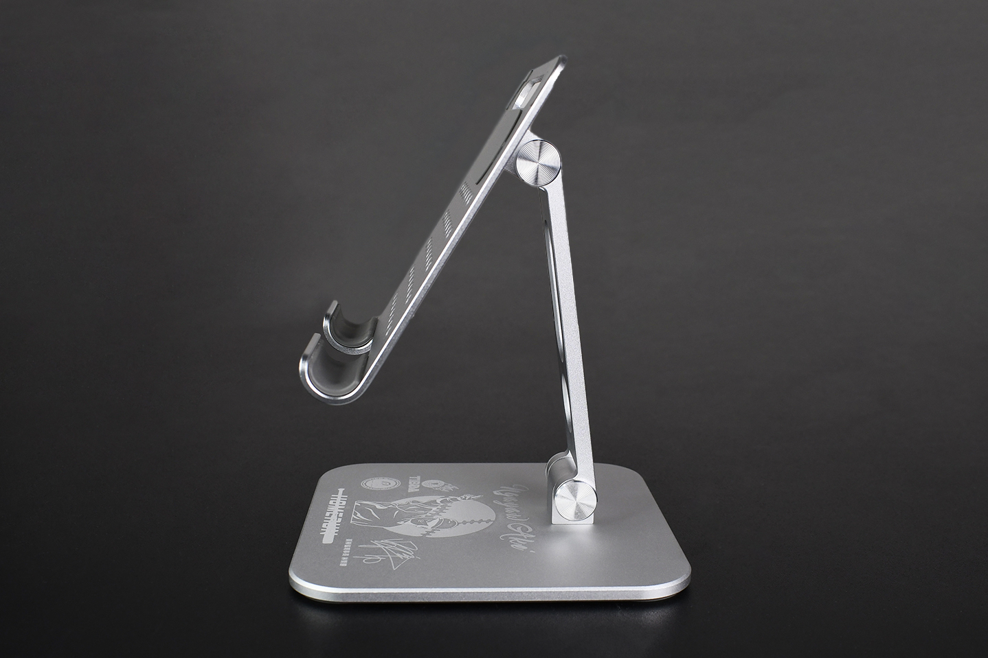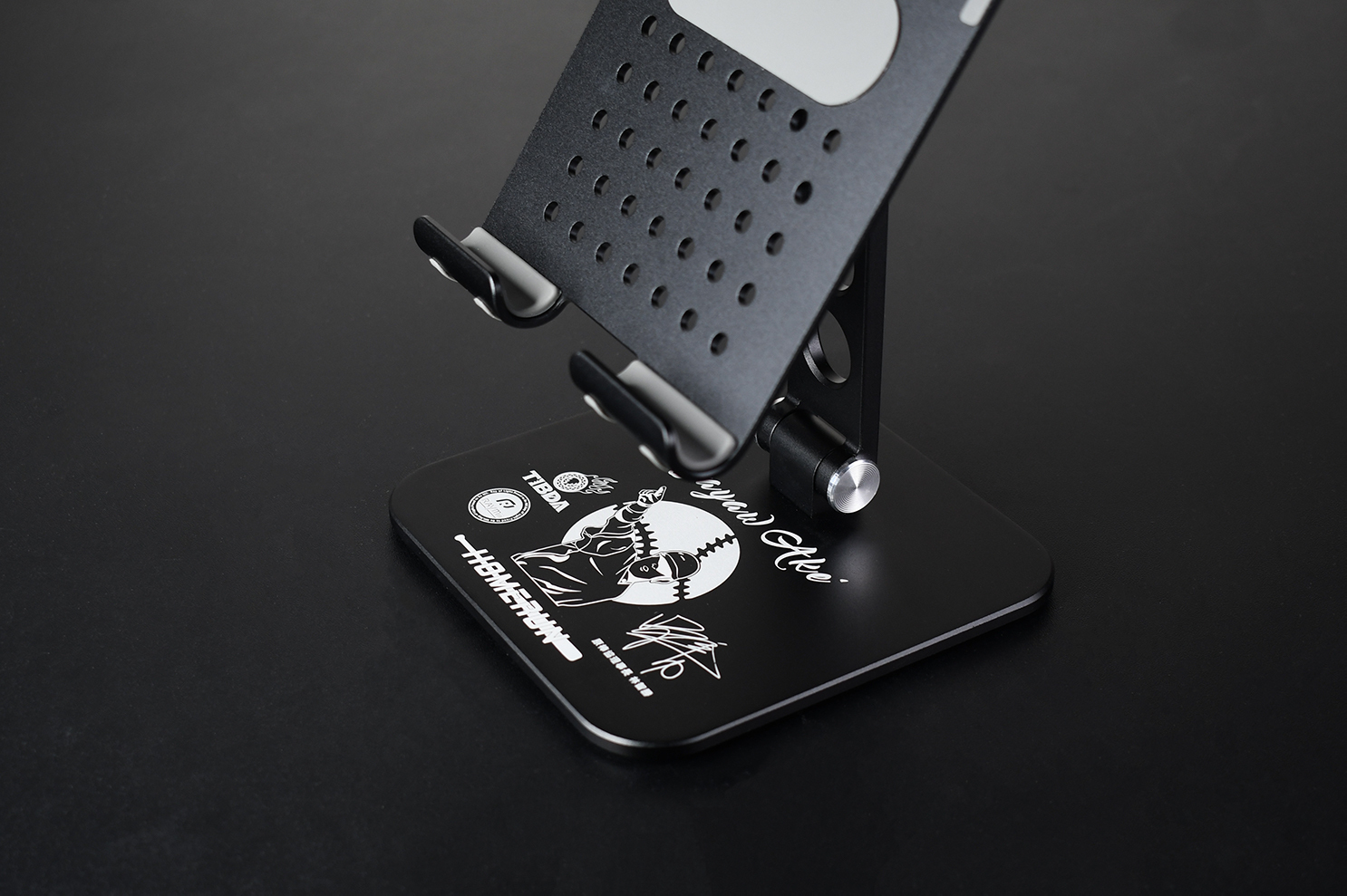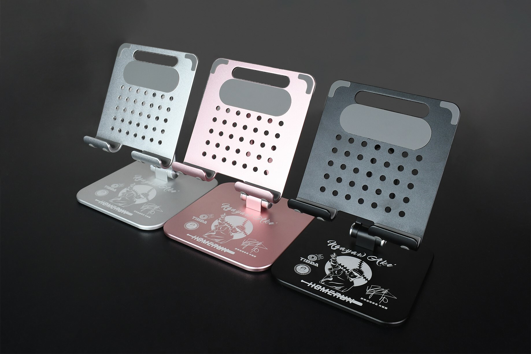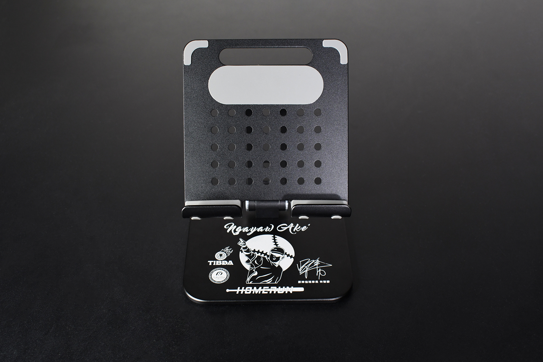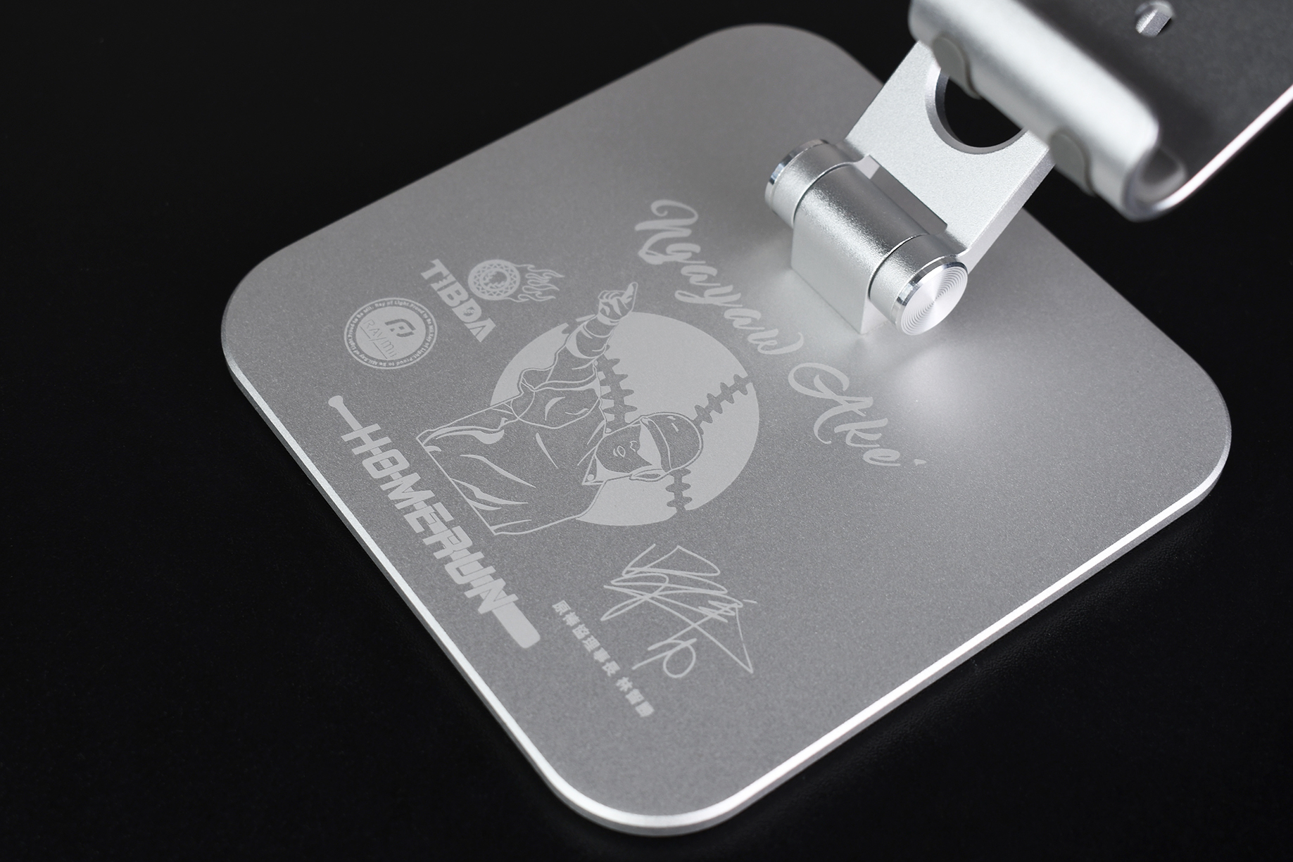 手機與平板均是現代人不可或缺的工具,利用支架能夠解放雙手,抬高視線,守護肩頸健康。此次公益紀念款由全鋁合金打造,用料扎實;金屬表面經過陽極氧化工藝處理,製作精良,永不掉色。透過高精準高功率雷射雕刻,將林智勝本人的剪影與簽名精美的呈現於底座上,搭配經典棒球元素設計,並一次推出銀色,黑色,玫瑰金三種款式,整體極具收藏價值。