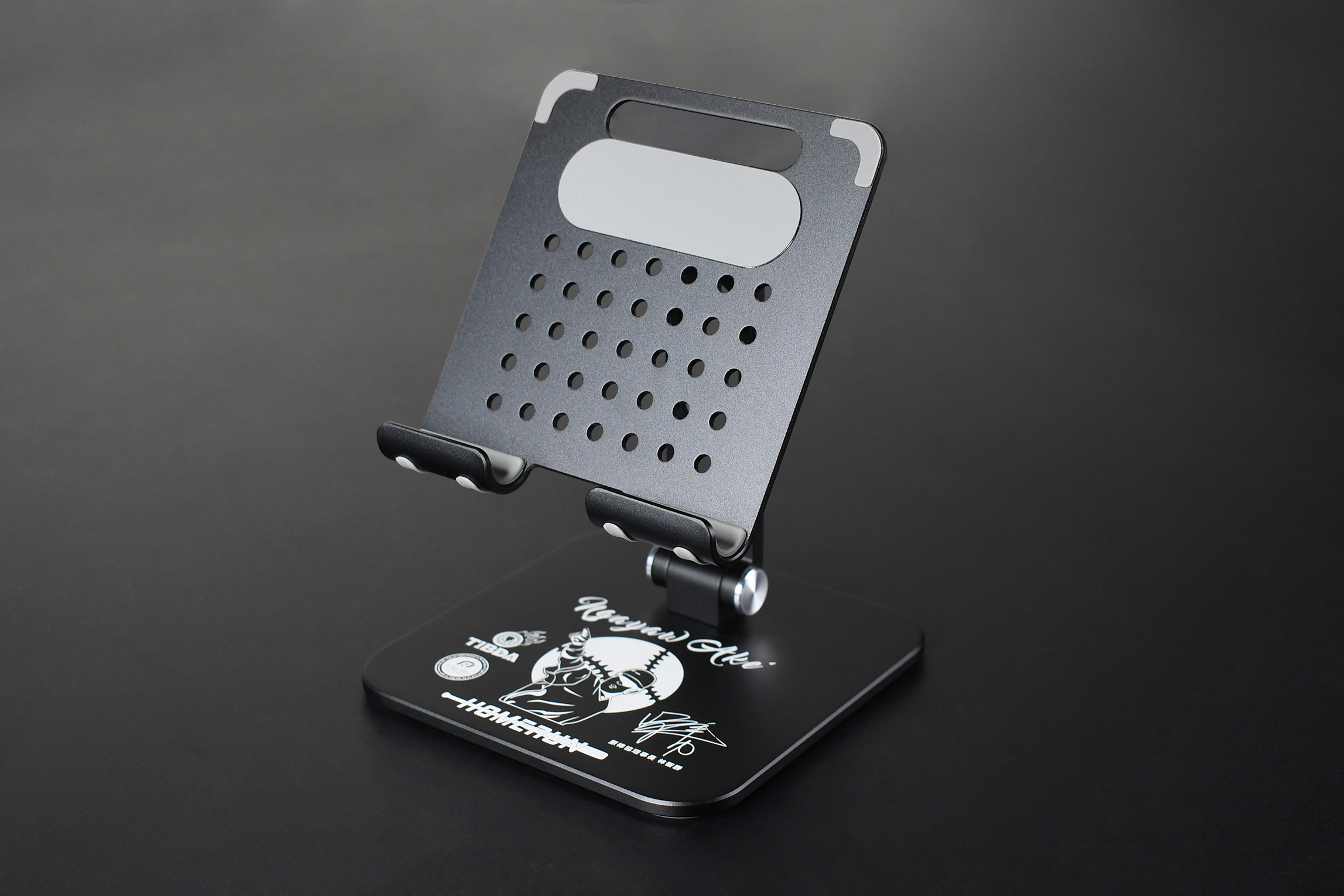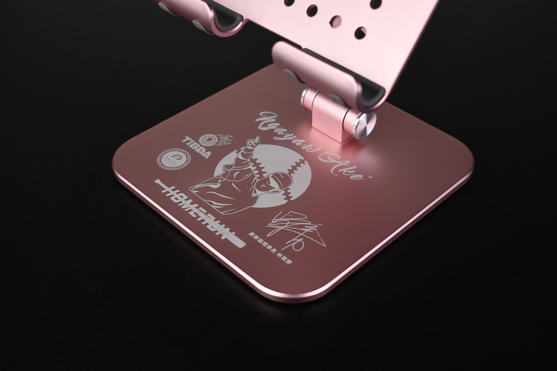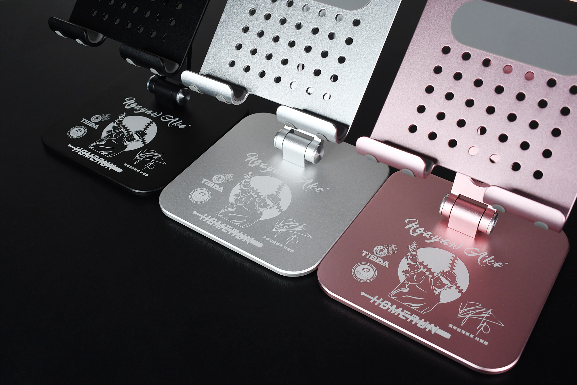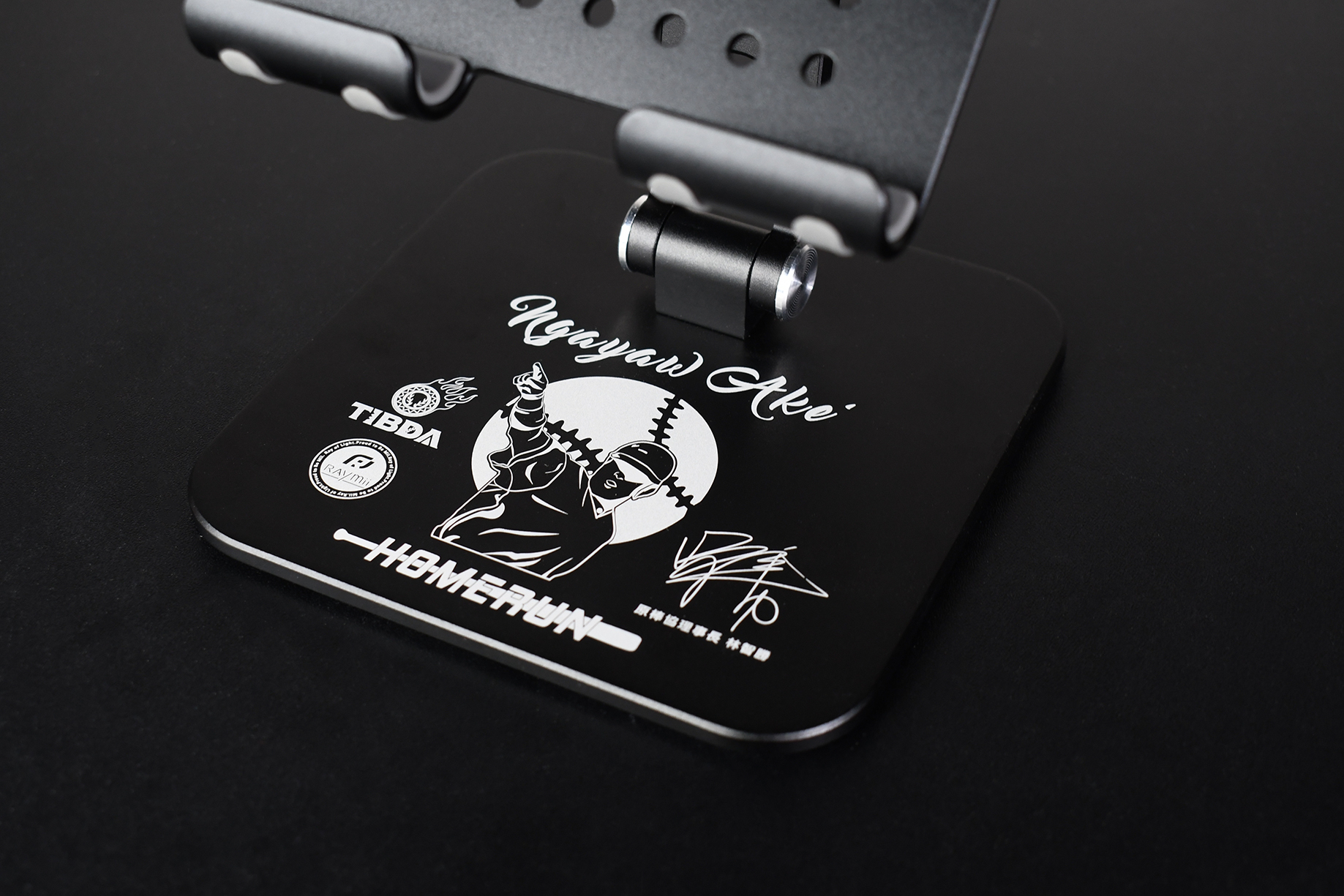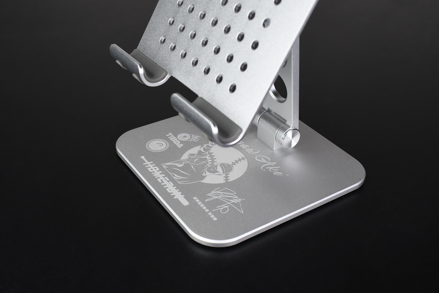 手機與平板均是現代人不可或缺的工具,利用支架能夠解放雙手,抬高視線,守護肩頸健康。此次公益紀念款由全鋁合金打造,用料扎實;金屬表面經過陽極氧化工藝處理,製作精良,永不掉色。透過高精準高功率雷射雕刻,將林智勝本人的剪影與簽名精美的呈現於底座上,搭配經典棒球元素設計,並一次推出銀色,黑色,玫瑰金三種款式,整體極具收藏價值。